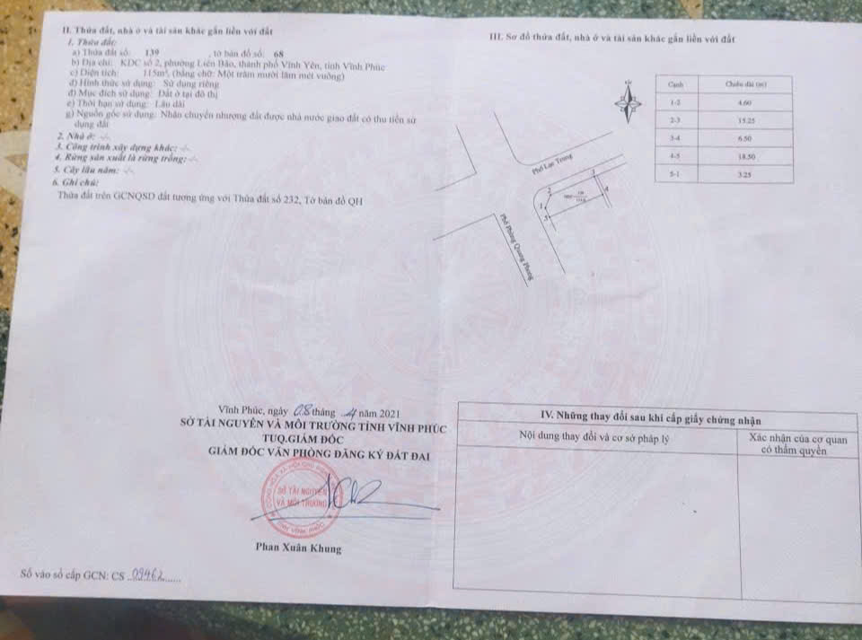 Cần bán lô góc giao giữa đường Phùng Quang Phong và đường Lạc Trung, Liên Bảo, Vĩnh Yên